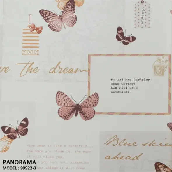 ورق جدران كوري تشكيلة كتابة مع فراشات احمر بني رمادي